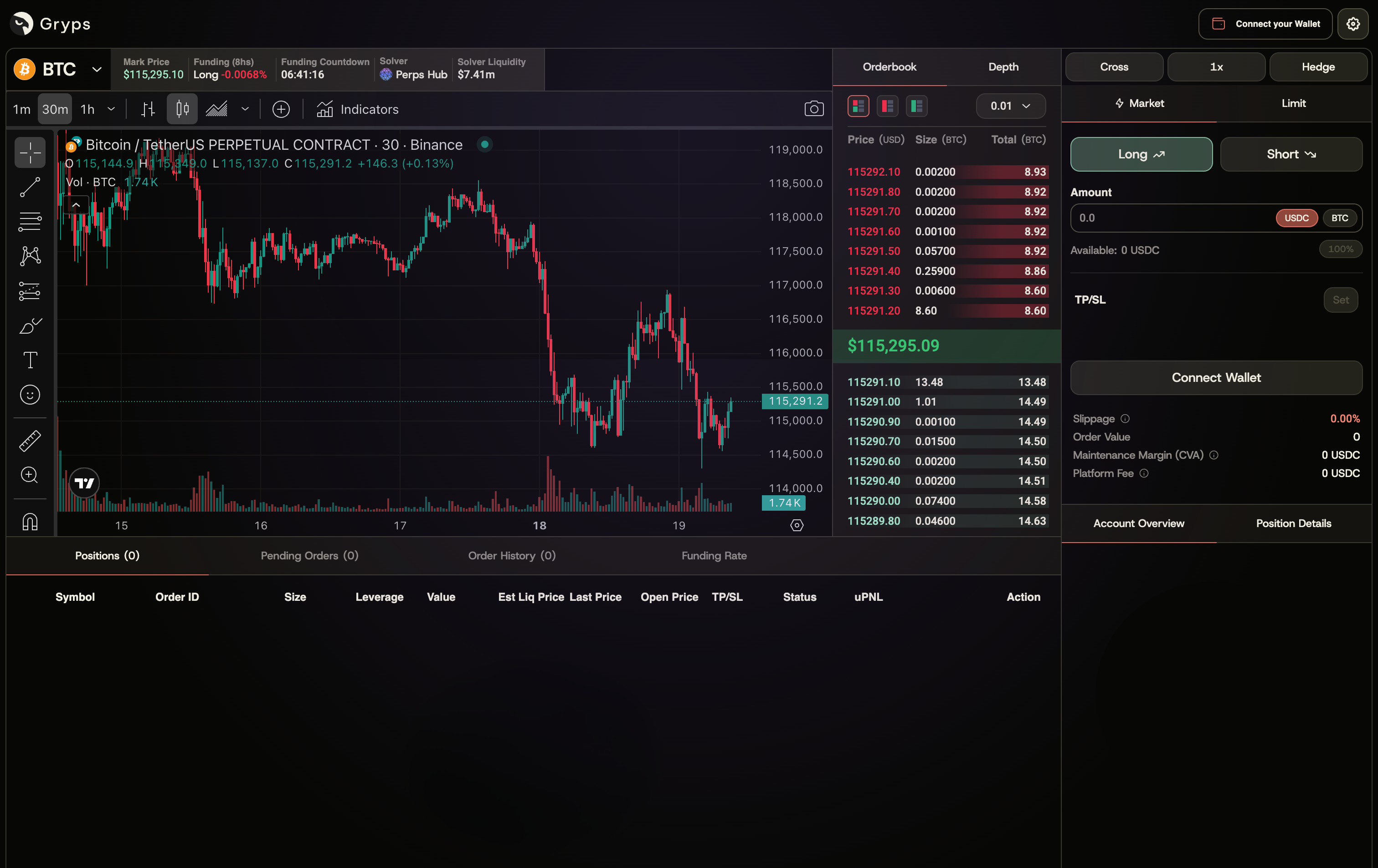 With 500+ perpetual markets Gryps is the largest on-chain perps offering in the market. Our unified platform continuously aggregates global exchange liquididy, giving you the best prices and deepest markets.